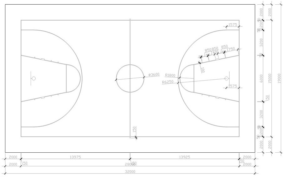 籃球場地標準尺寸圖